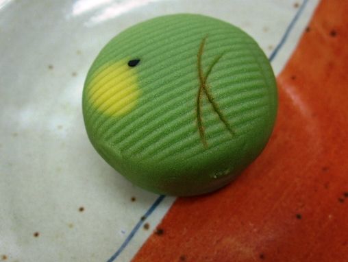上生菓子を指で指しました。その中から「蛍火」などを買い美味しそうに家で食べていました。