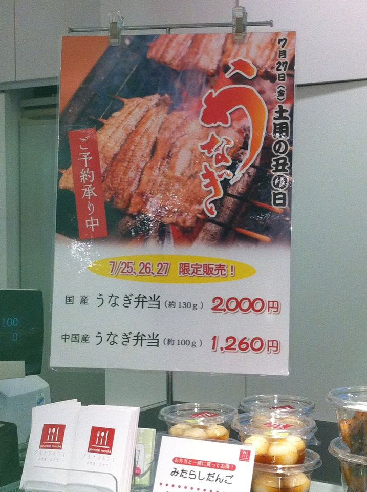 2012年07月14日 土用の丑の日 公開済み: 2012年7月14日更新: 2012年7月14日作成者: スタッフカテゴリー: 桔梗信玄餅工場テーマパークブログ もうすぐ土用の丑の日ですねぇ! 最近ではお客様に『うなぎはないの 』と聞かれる回数が増えてきました。 そして、ここで朗報です 実は、グルメマルシェでは土用の丑の日に エクランの通路にてうなぎ弁当を販売します! もちろん店内でも販売しますよぉ♪ また、只今うなぎ弁当のご予約もうけたまわっておりますので 気軽に従業員にお声をおかけ下さい —- 阪野