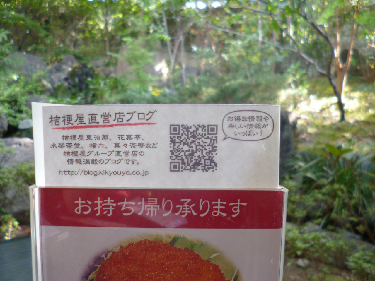 記事の内容はというと、水琴茶堂卓上の三角ポップに桔梗屋グループのブログのQRコードを載せたというもの。