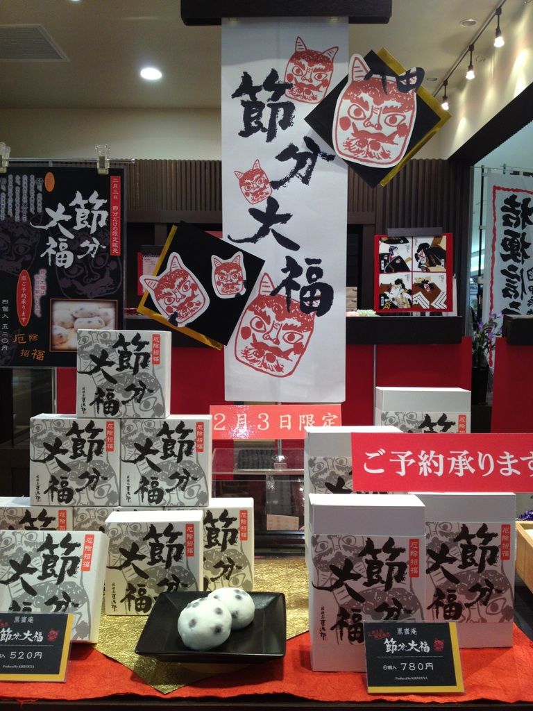 2014年01月26日 二月三日限定 公開済み: 2014年1月26日更新: 2014年1月26日作成者: スタッフカテゴリー: 桔梗信玄餅工場テーマパークブログ 一月も終わりに近づき、もうすぐ梅の花の咲く季節の二月に入ります 。 そして二月三日は、二月に入って一番はじめのイベントの節分です。 この節分の日を待っていました。 なぜなら、二月三日限定節分大福が食べれるからです。 当日の朝作り、餅は山形県産のもち米に、 北海道産の大粒黒大豆を入れ、餡は北海道産小豆を使用。そして甘さ控えめ。 味も、素材もこだわりの一品です。 大福好きな私としては とても待ち遠しいです。 長坂
