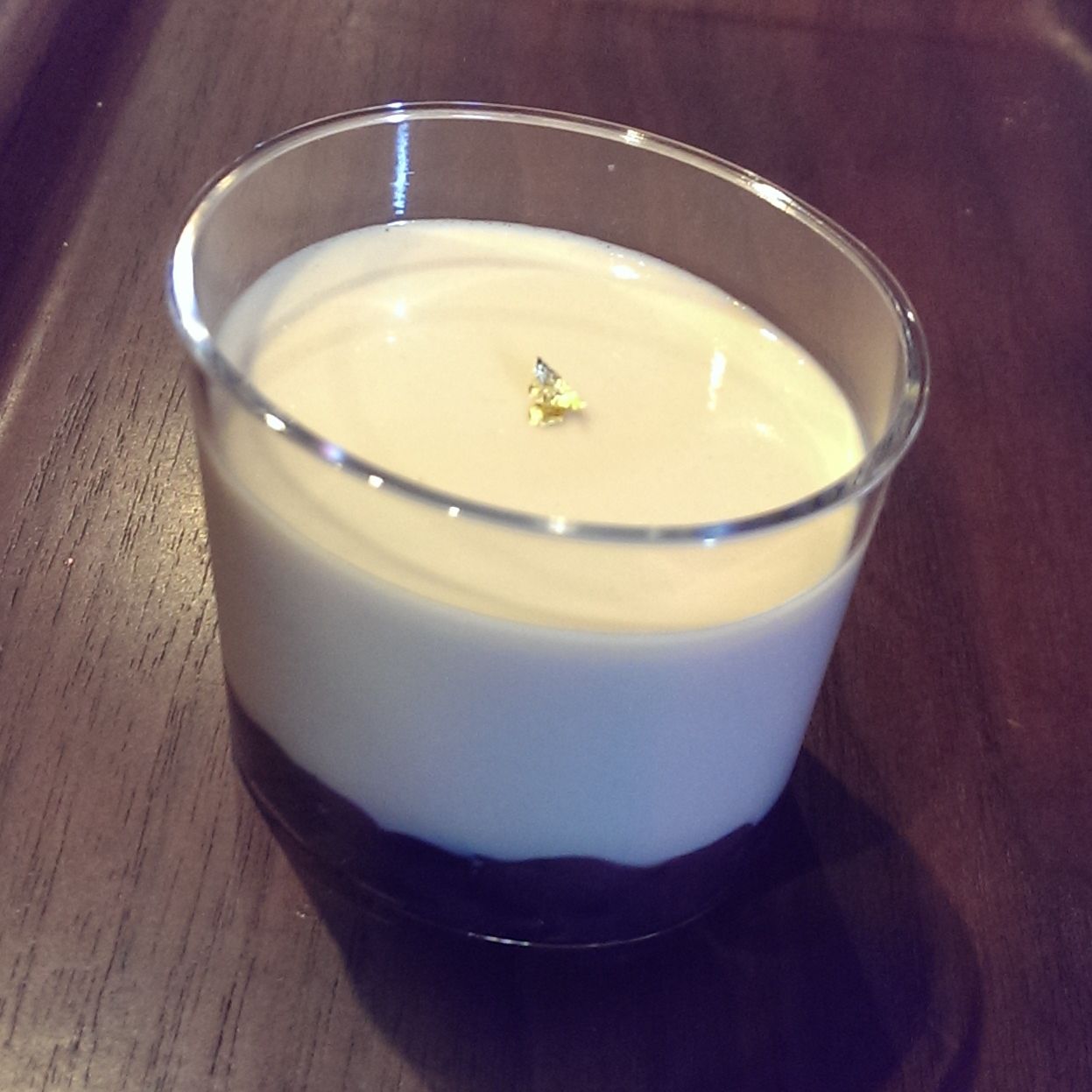 ほうじ茶を煮出した牛乳で作ったプリンの下には