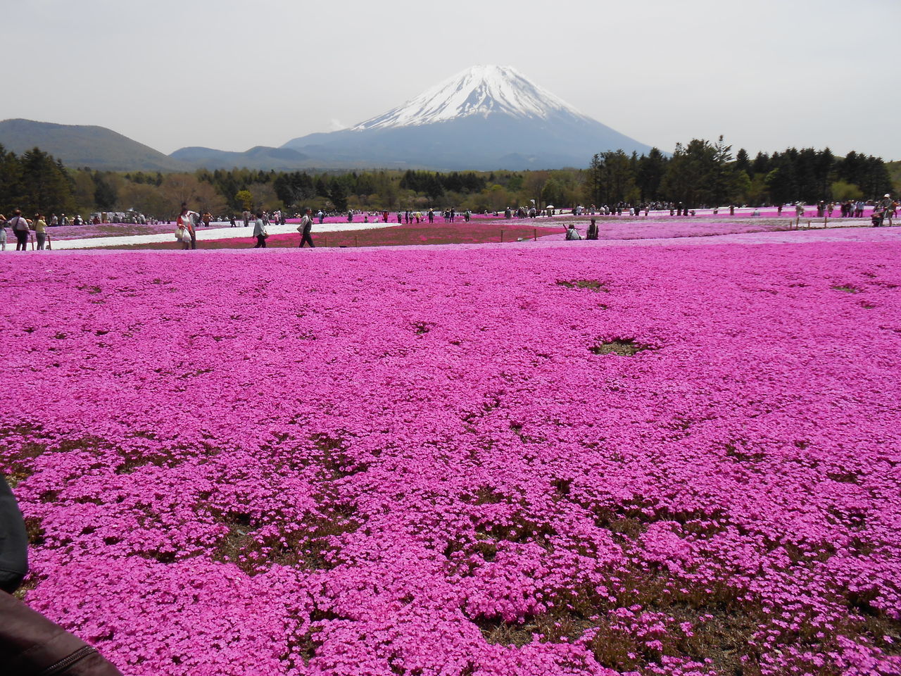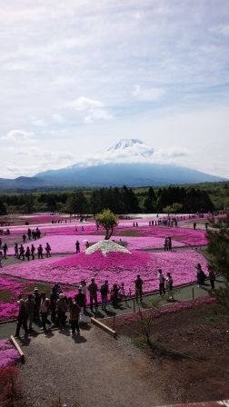 2014年05月23日 富士芝桜まつり 見頃です 公開済み: 2014年5月23日更新: 2014年5月23日作成者: スタッフカテゴリー: 桔梗信玄餅工場テーマパークブログ 本栖で行われている芝桜が見頃だと聞いたので、 見に行ってきました。 快晴で富士山もくっきりと見えました。 早い時間に行ったのですがお客さんがたくさんいて驚きました。 園内には白とピンクで模った小さな富士山があります。 そこでは、富士山とミニ富士山との2ショットで写真が撮れる場所があります。 園内を回っていると桔梗信玄餅を発見。 ついつい写真を撮ってしまいました。 皆さんお土産に買っていました。 渡辺
