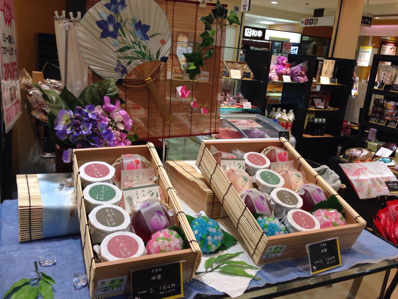 さて、ただいま桔梗屋の直営店では、お中元にピッタリな涼菓の詰め合わせを多数ご用意しています。