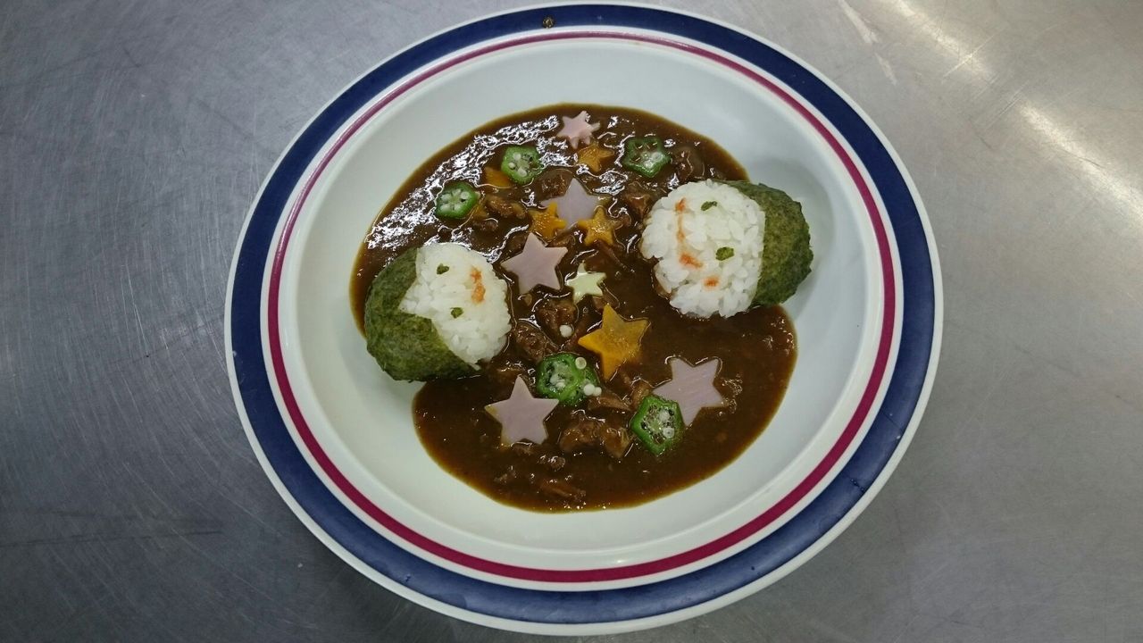 カレーのご飯を織姫と彦星型のおにぎりにし、