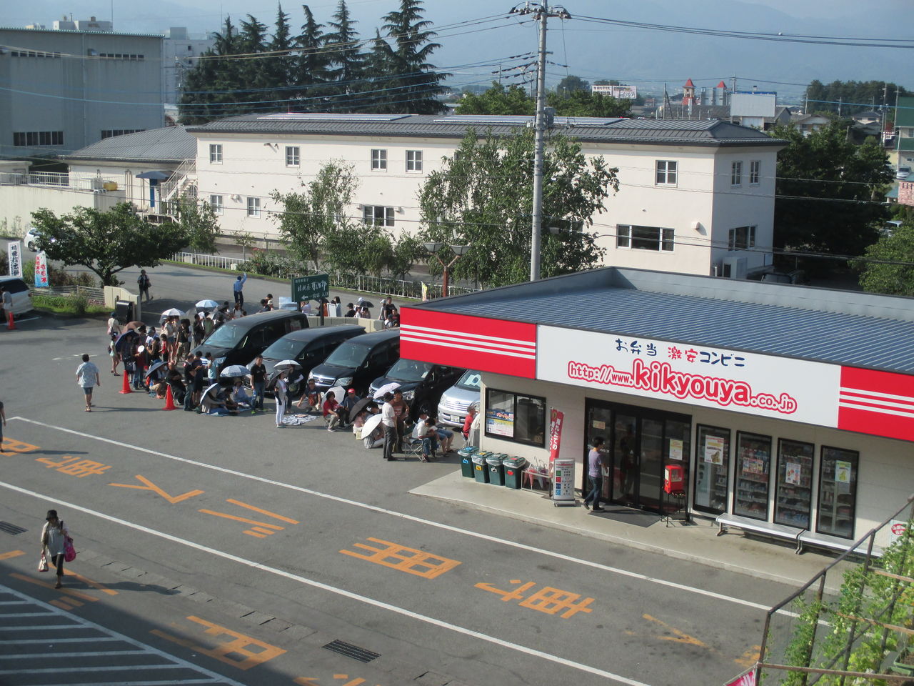 写真には写っていませんが、グリーンアウトレット入口からスタートした列は、コンビニの後ろを通り、門の外まで続いています。
