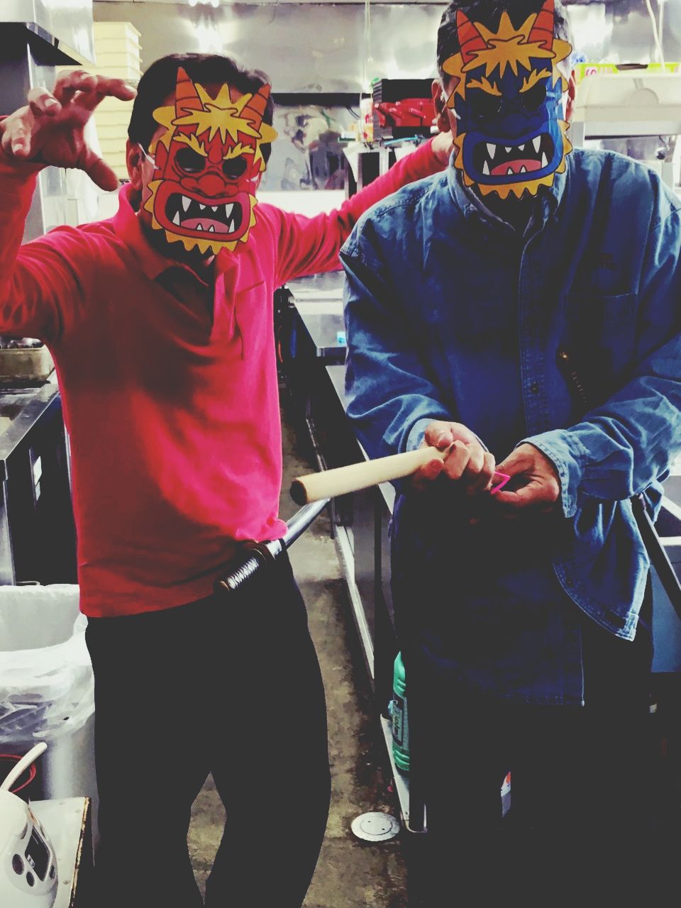 赤鬼と青鬼に扮したのは、権六の厨房のお2人。