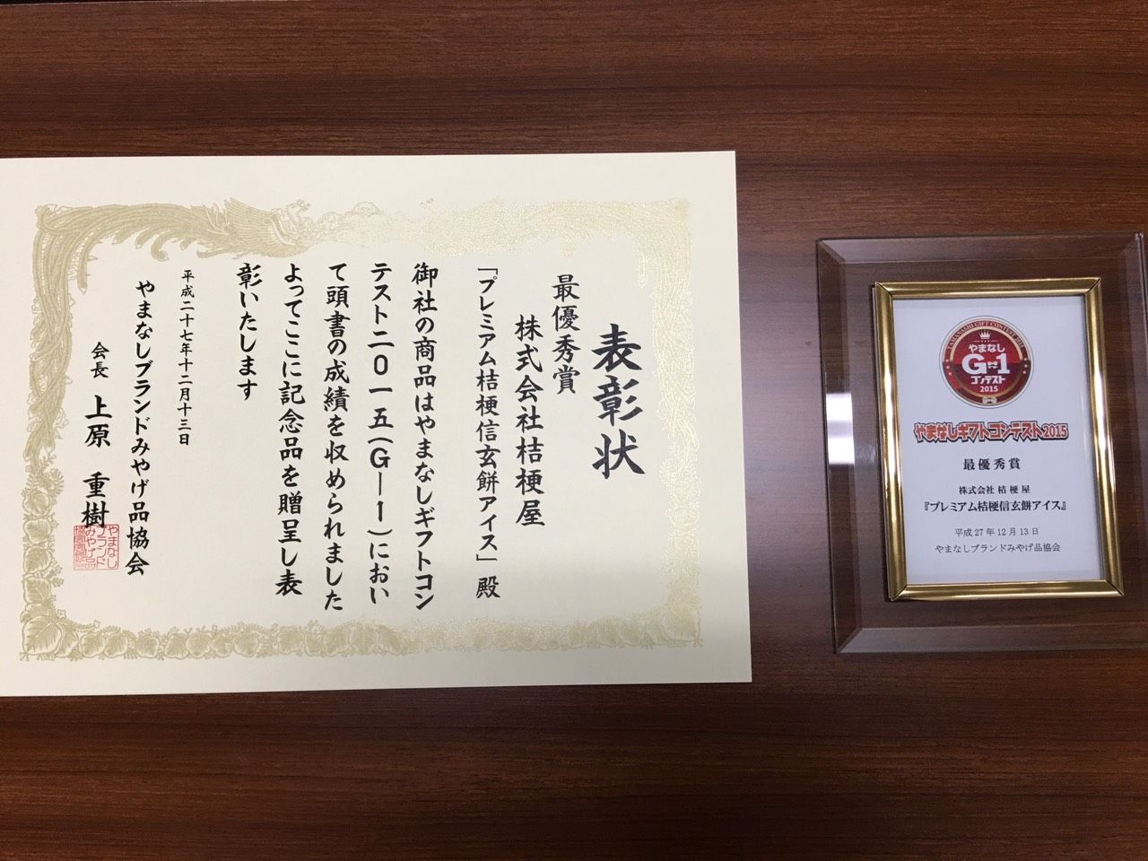 からプレミアム桔梗信玄餅アイスが最優秀賞をとりました。