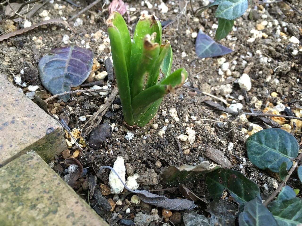 寒さは厳しいですが毎日晴天が続いており、清々しい気持ちでお仕事に向かう前、自宅の庭に出てみると秋に植えたヒヤシンスの芽が出ていることに気が付きました。