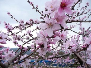 このまま咲き進めば、今週末の工場祭りの頃には、満開の桃畑がピンクの絨毯のよう