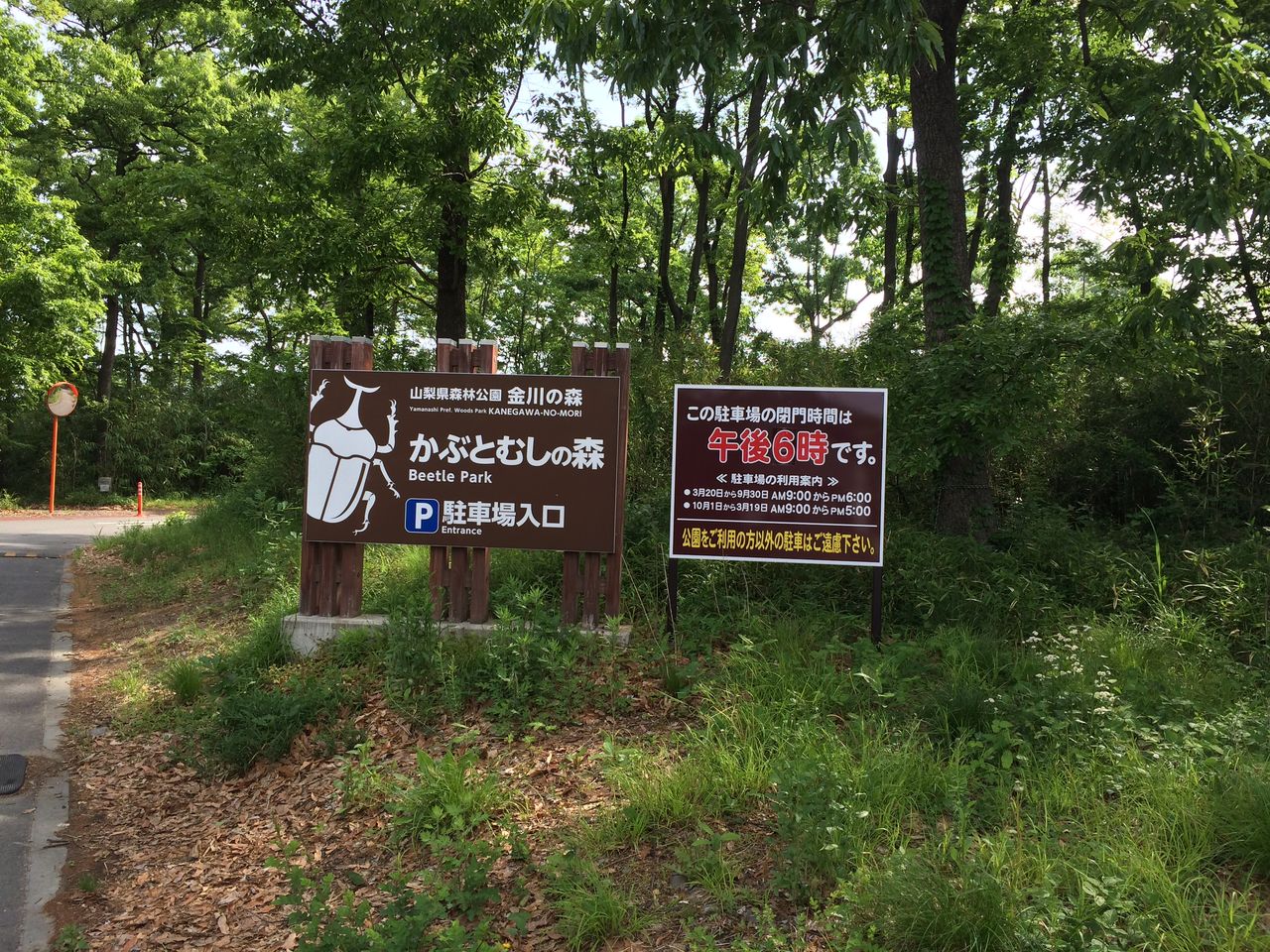 桔梗信玄餅工場テーマパークの北側に隣接している「かぶとむしの森(山梨県森林公園・金川の森)」の木々の新緑が目を楽しませてくれる季節になりました。