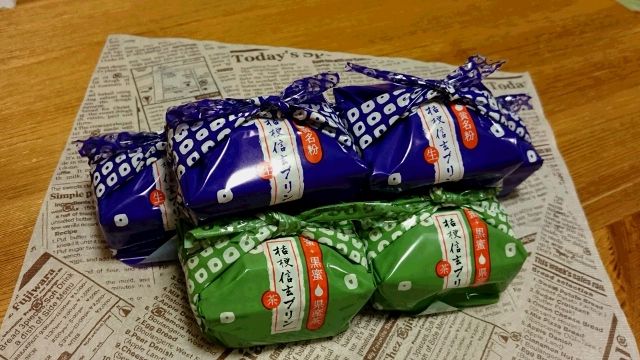 買って帰るのを楽しみにしている息子たちに桔梗信玄生プリンを手渡すと、