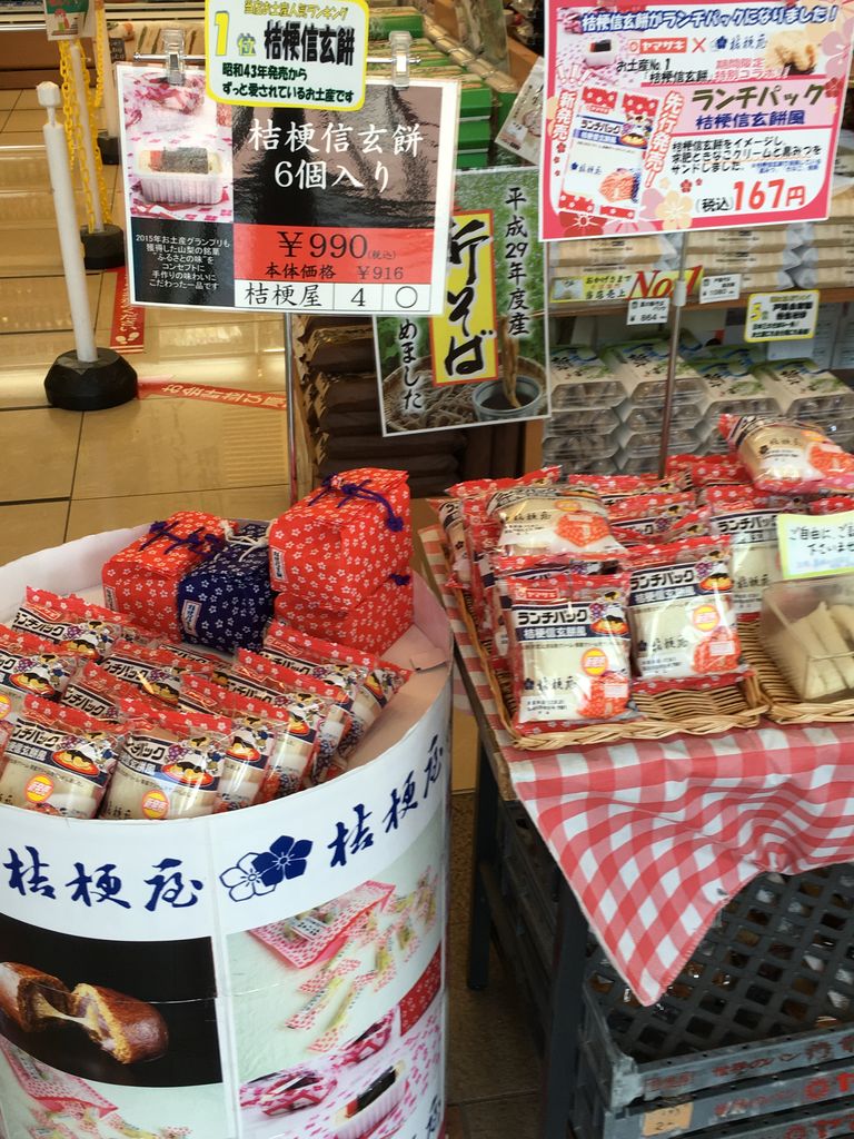 山梨の人気お土産である桔梗信玄餅が隣の長野県でも高速道路のパーキングエリアを中心に大人気です。