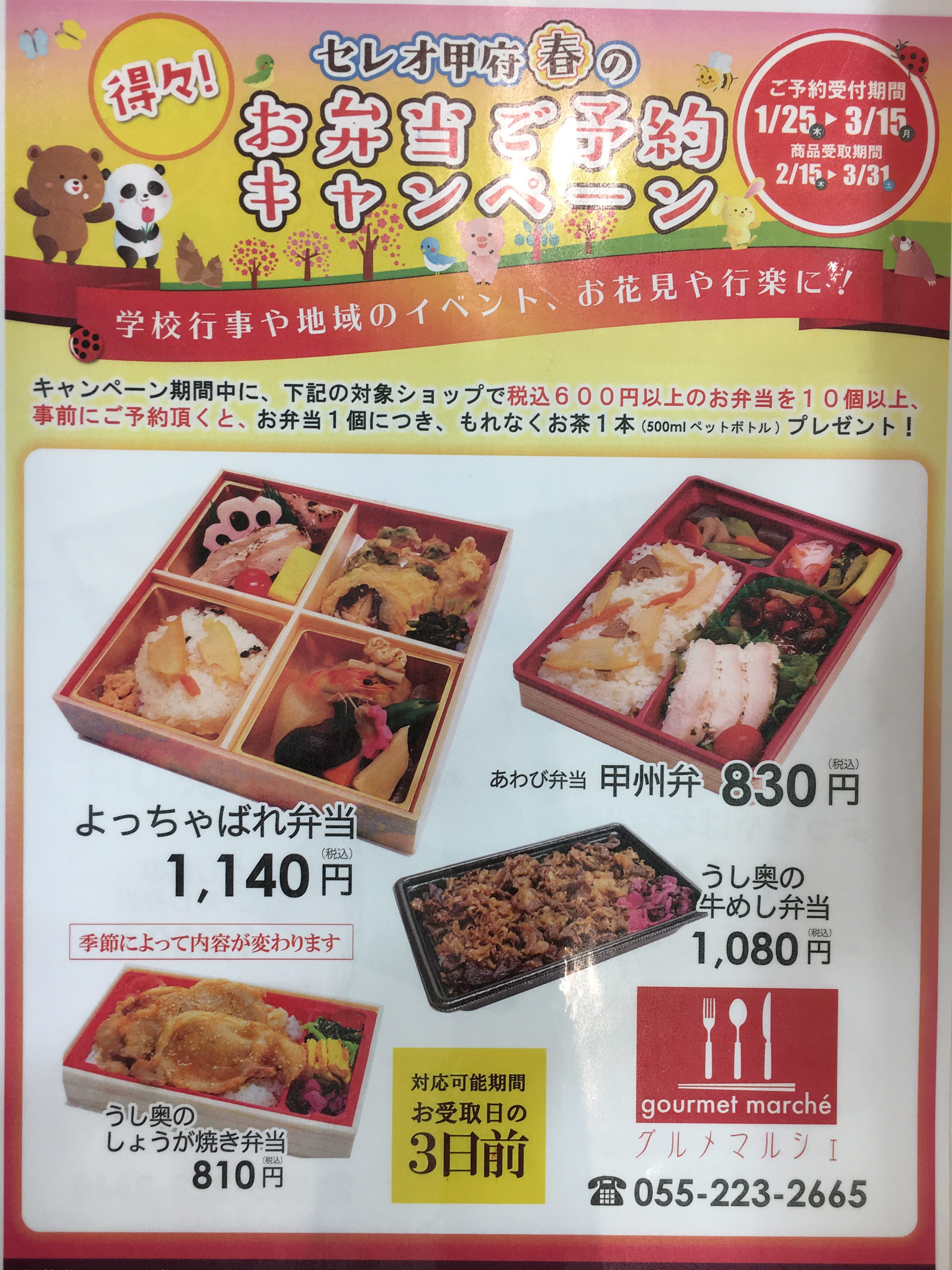 セレオ甲府グルメマルシェでも3月1日よりお花見弁当や