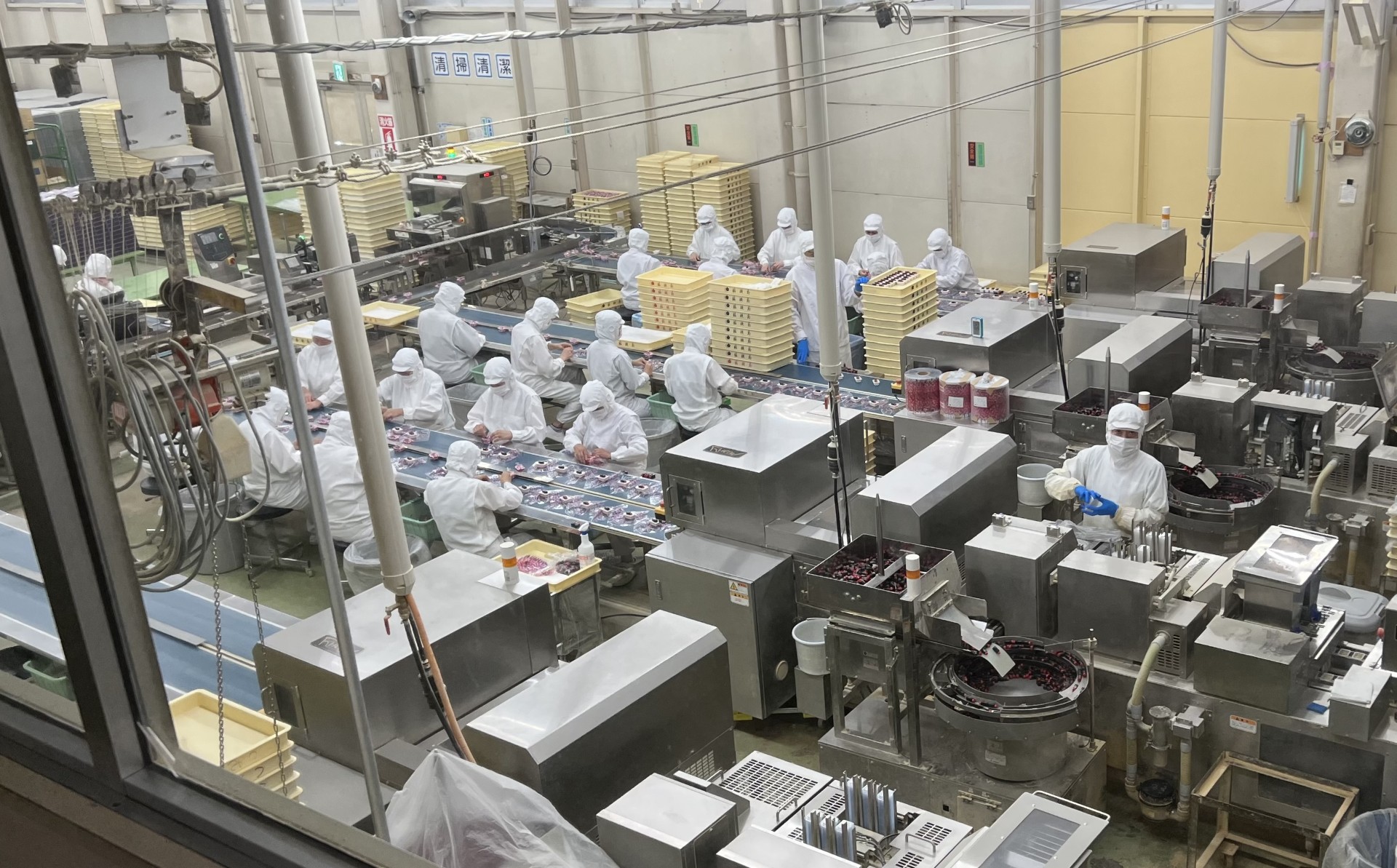 桔梗信玄餅や桔梗信玄生プリンなどの製造工程を見ながら、