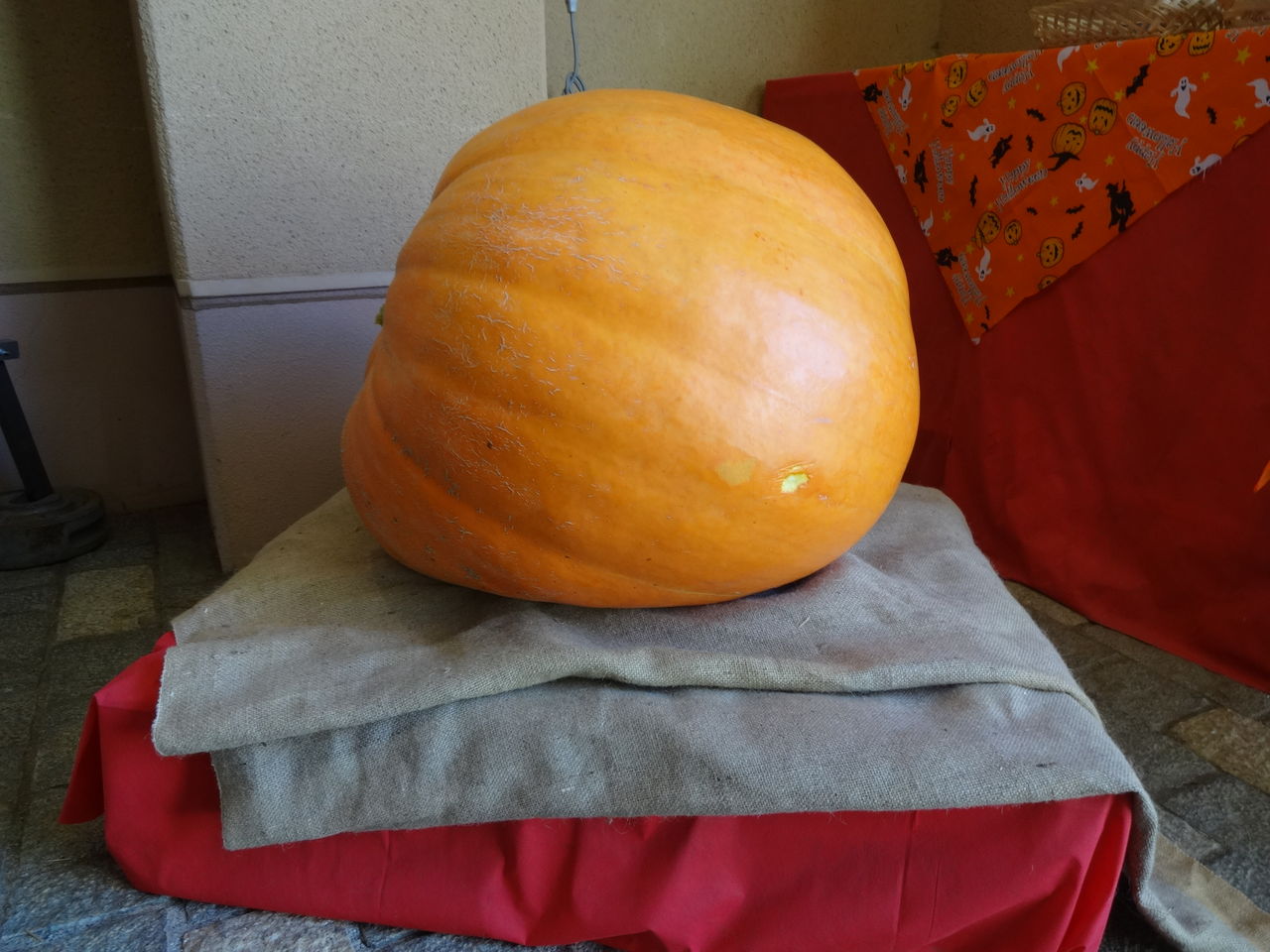 いつもは一宮本社工場の事務所で仕事をしていますが、今日はここで従業員の健康診断の受付です。仕事で来ていますが、園内只今ハロウィンの飾りがしてあり何かウキウキしてしまいます。入園口には、ありました、ありました、重さを当てるあの大きなカボチャが。