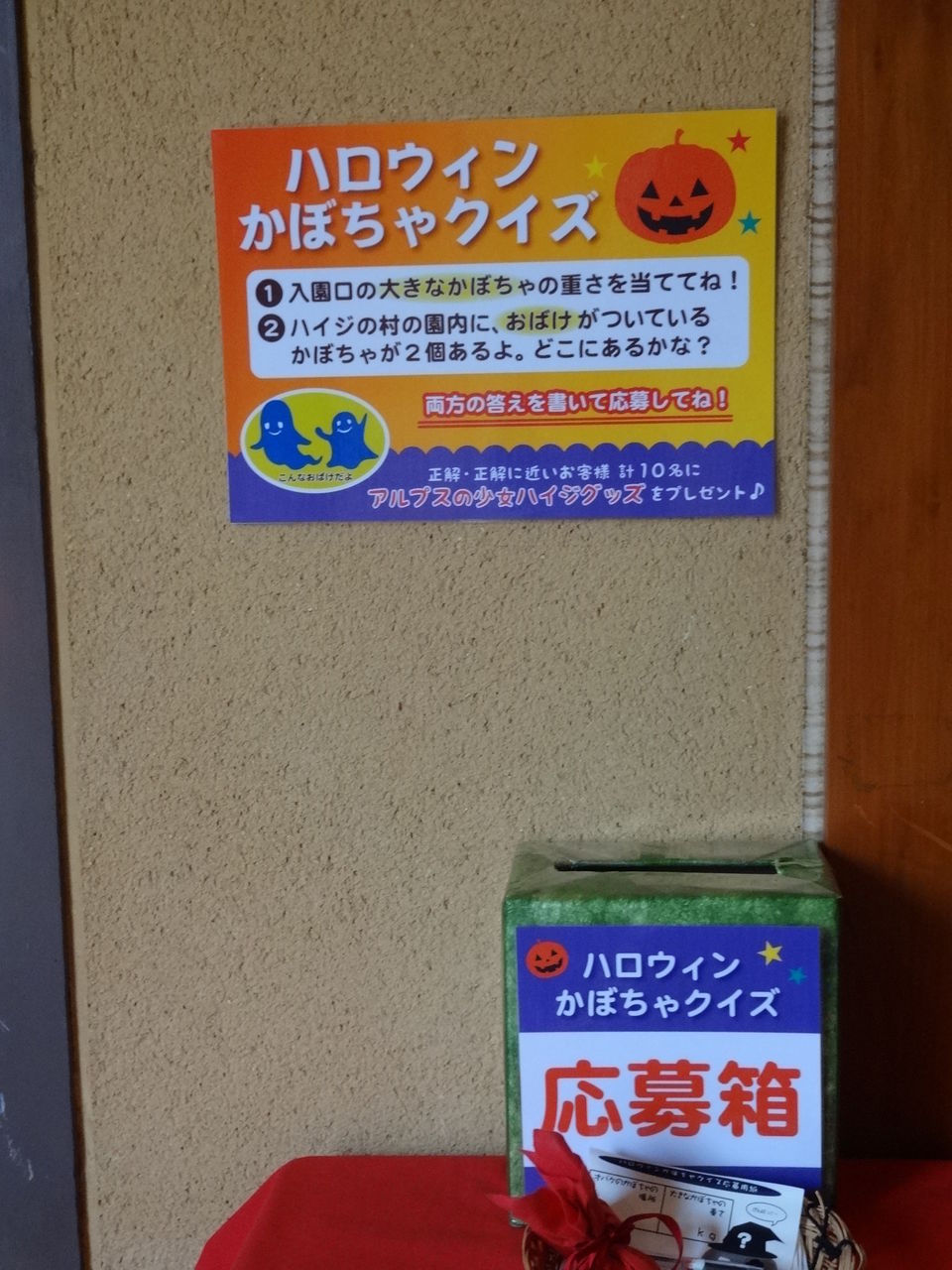 二週間程前にハイジの村に遊びに来たのですが、その時は重さ当てクイズに応募ができなかったので休憩の時にでも応募しようかな。