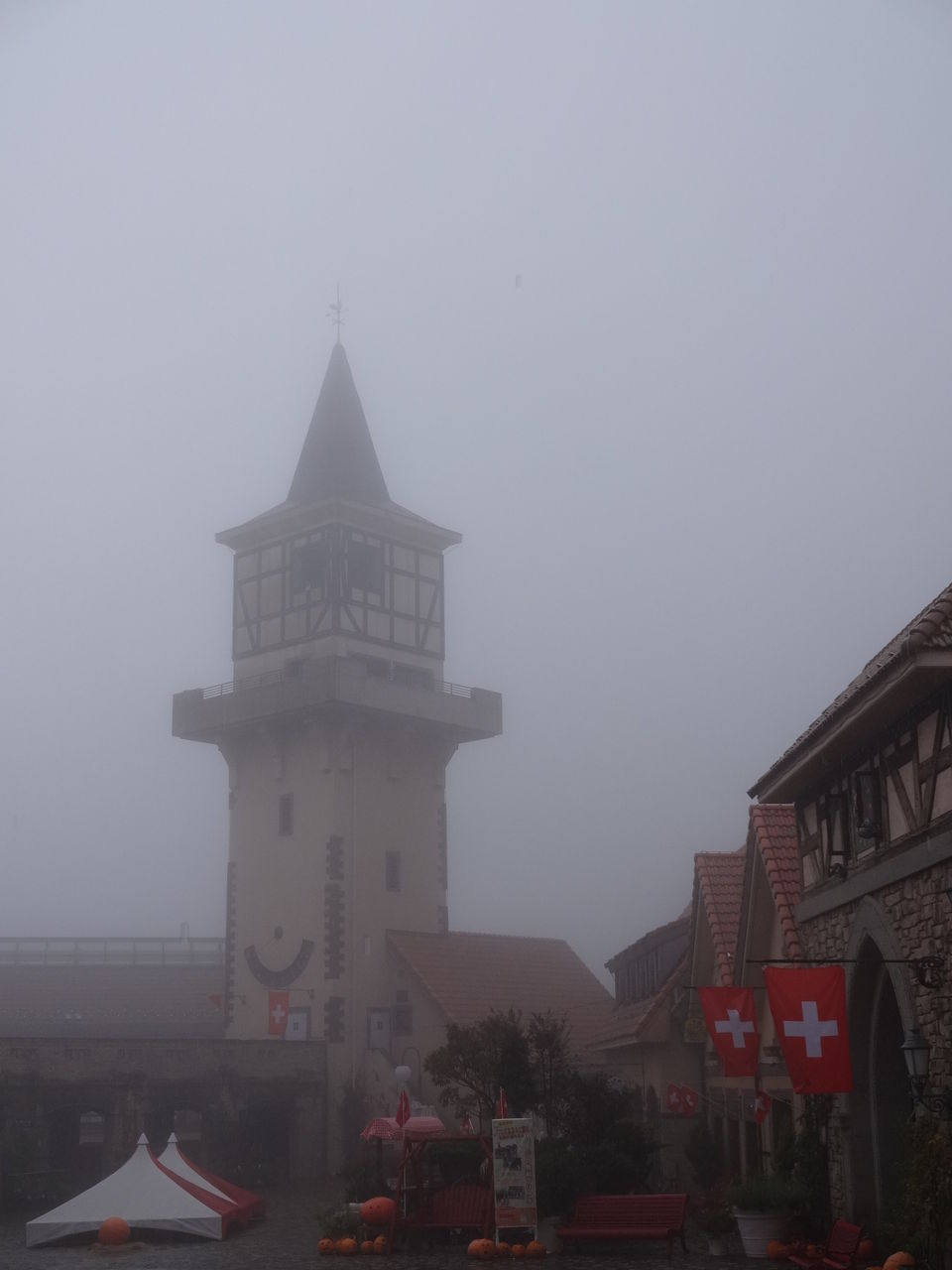 この時計台とスイスを思わせる風景は・・・北杜市にあるハイジの村です。遊びに来たわけではないですよ。