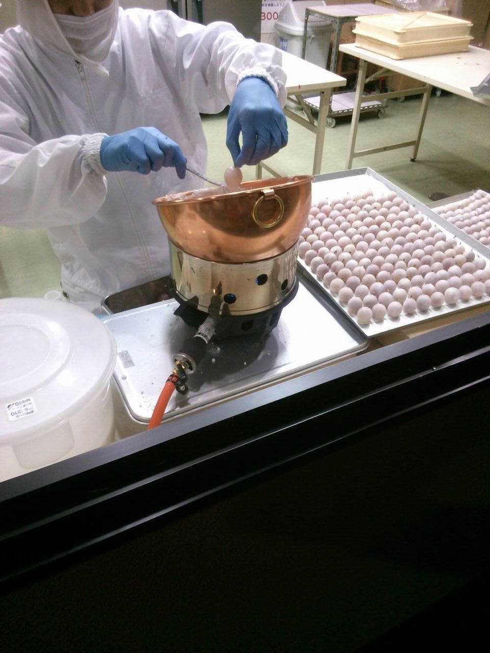 そしてそして、本社工場のお菓子の美術館内では、月の雫を作る現場をお客様にお見せしているんです。