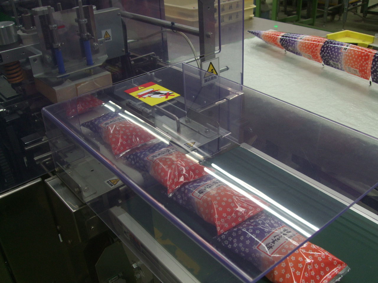 2017年02月27日 桔梗信玄餅2個入包装機 公開済み: 2017年2月27日更新: 2017年2月27日作成者: スタッフカテゴリー: 桔梗信玄餅工場テーマパークブログ 私は、製造部製造5課の桔梗信玄餅2個入包装機の紹介をしたいと思います。 (優れものです) 包装機は、桔梗信玄餅箱入れのように上包みを思い浮かべると思いますが、 2個入は巻取りになつていてそれが機械に入り袋に入って出てきます。 工場見学へお越しの際は、2個入包装機も気にかけて見てください。 製造5課 小池
