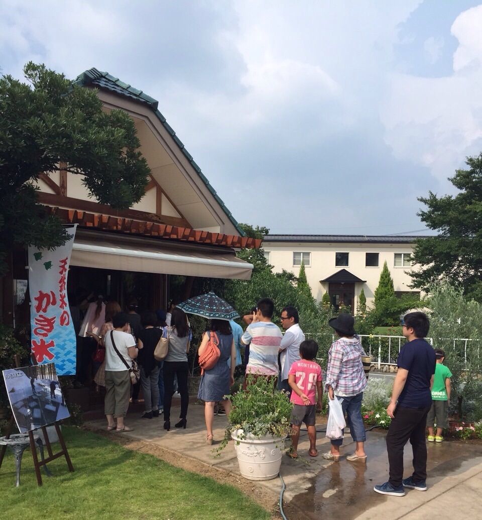 夏休みで多くのお客様で賑わっておりお子様から大人の方まで天然氷のかき氷を食べて涼しんでました。
