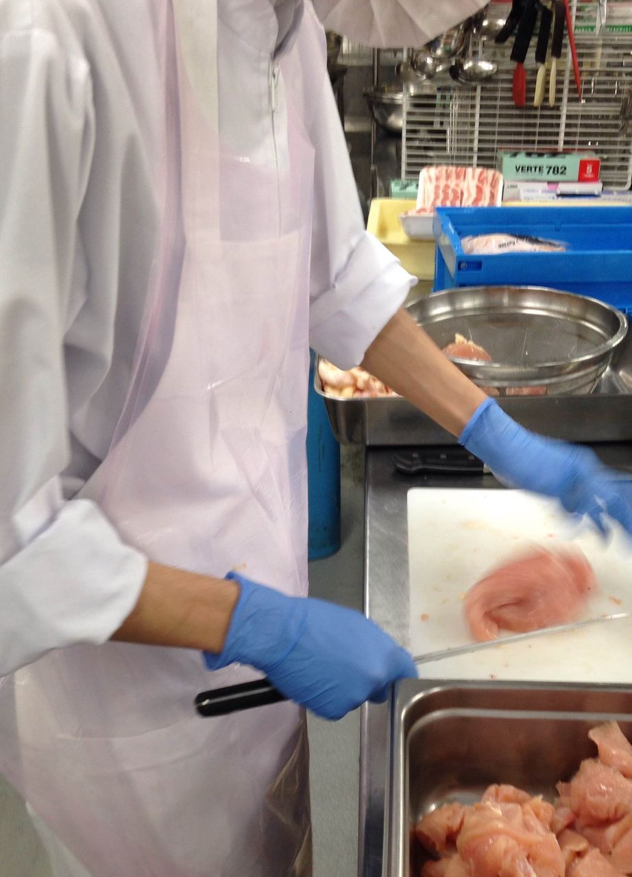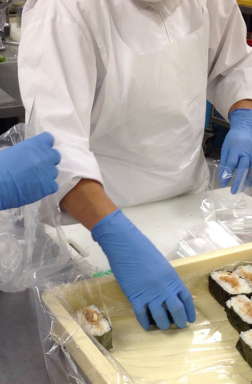 そしてブルーの手袋は、有ってはならない異物混入防止の対策です。