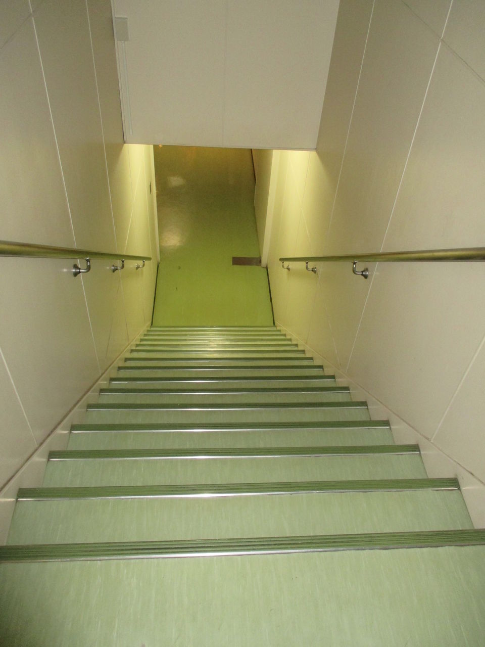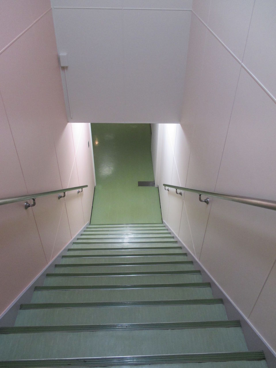 写真は、一部ですが、工場見学通路の壁の色が変わりました。