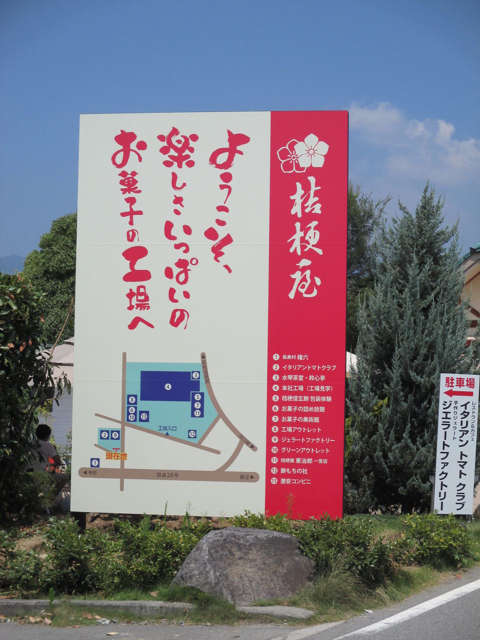 実は、「20号線から入ってきて、近くにいると思うんだけど、工場はどのあたりでしょうか」と電話でのお問い合わせがよくあったのです。これで迷わず目的地に向かえますね。